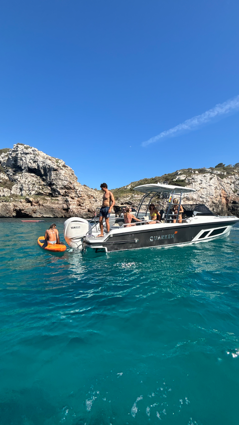 Our Quarken 27 T-Top is fitted with a powerful Yamaha 300CV outboard engine, ensuring you experience the ultimate driving experience and reliable performance in all conditions. From exhilarating speed to smooth handling, this exceptional vessel delivers on its promise of adventure and excitement on the water.
